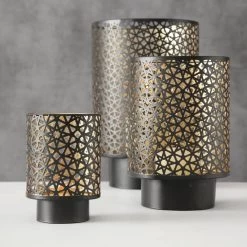 Deco By Boltze Windlichten – 3 Stuks – Goud En Zwart – Metaal