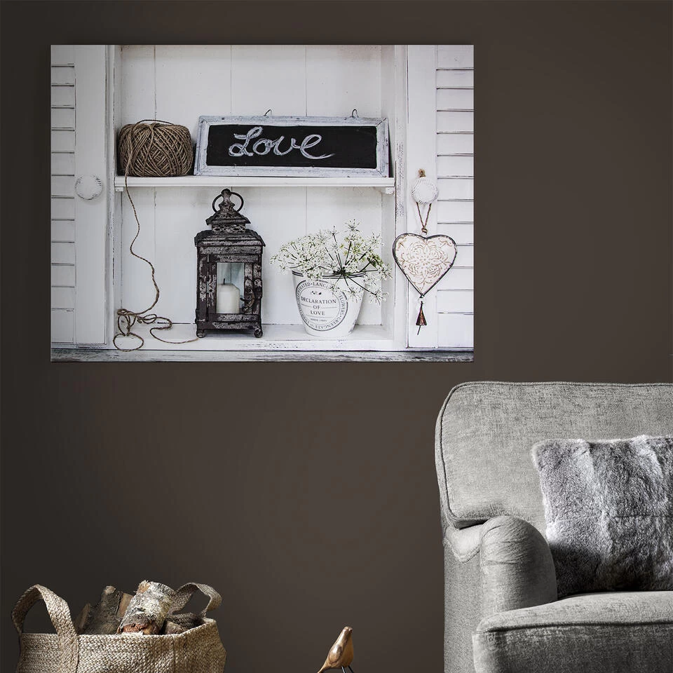 Versier je ruimte met dit romantische huiselijke canvas. Dit mooie stilleven is gespannen op een MDF frame en voorzien van een ophanghaakje.