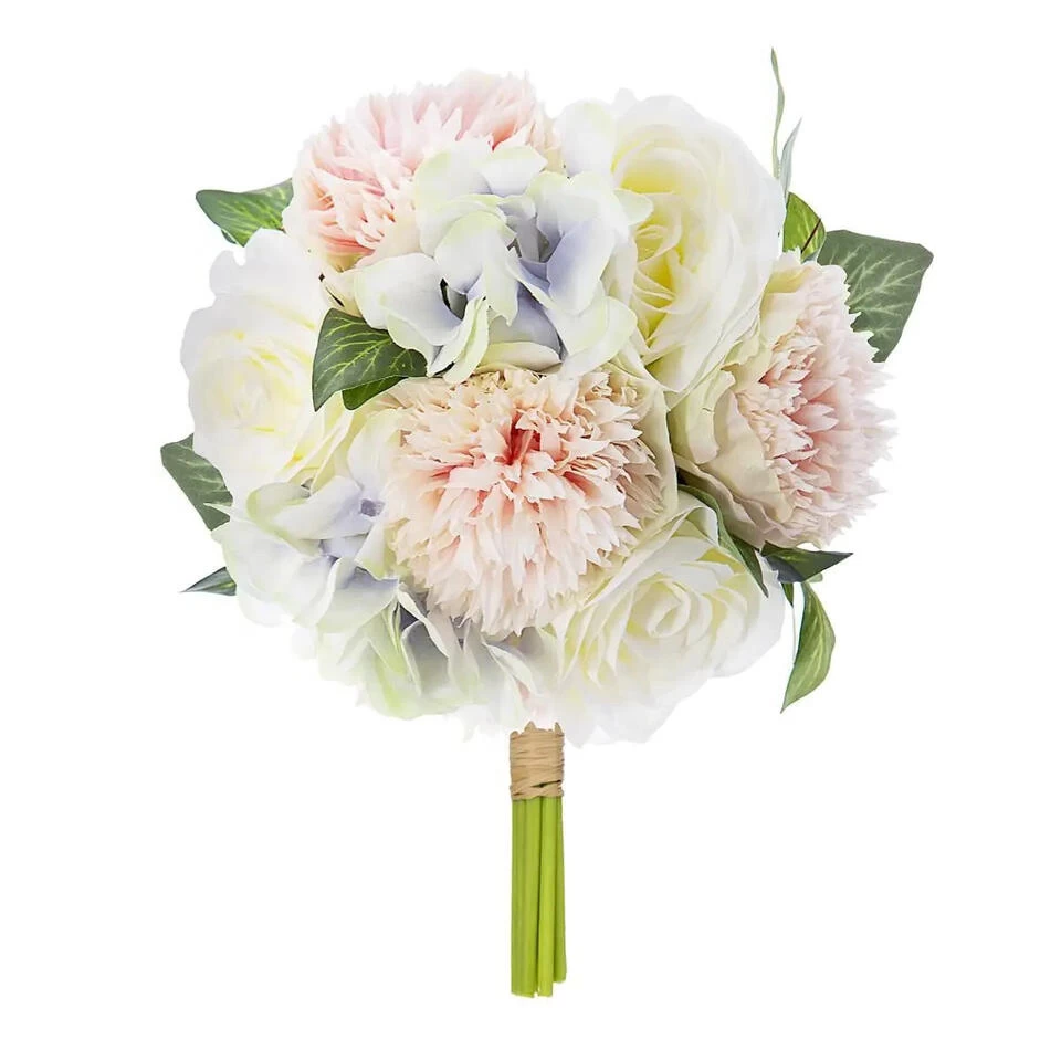 Atmosphera anjer boeket kunstbloemen wit/roze 26 cm. Zeer realistisch uitziende, onderhoudsvrije kunstbloemen boeket om los in een vaas te zetten of om te gebruiken als eeuwig houdbaar bruidsboeket. De bloemblaadjes hebben een zijdezachte afwerking. Materiaal: kunststof/plastic, zijde, polyester. Formaat boeket diameter: 20 cm, hoogte: 26 cm. Nepplanten nepbloemen kunstboeketten woondecoraties voor in huis.