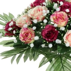 Louis Maes Kunstbloemen Boeket Rozen/gipskruid – Roze/donkerrood – H36 Cm