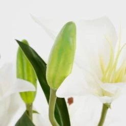 Merkloos Kunstplant Tijgerlelie – Wit – In Grijze Pot – 47 Cm