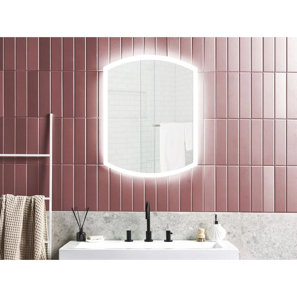 Badkamerspiegel met ingebouwd licht. Deze led-spiegel zal een geweldige aanvulling zijn op elke moderne badkamer en zal zeker de aandacht trekken. Daarnaast zal het stuk erg handig zijn – omdat het een ingebouwd licht heeft, kan het de hele kamer verlichten met een sterk, aangenaam licht. Daarnaast heeft het ook een anti-condensfunctie, zodat het zelfs na een warm bad volledig functioneel blijft. De spiegel heeft een set hangers aan de achterkant, zodat je hem gemakkelijk aan de muur kunt hangen.