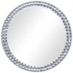 Wandhangende decoratieve spiegel. Maak je interieur niet alleen prachtig met stijlvolle meubels maar ook met mooie wanddecoraties zoals deze ronde spiegel. Het is handgemaakt en heeft een lijst met een verweerd effect in lichte houttinten, gecombineerd met zwarte en witte accenten. De spiegel zou een geweldige aanvulling zijn op een woonkamer of gang in een rustieke of traditionele stijl.