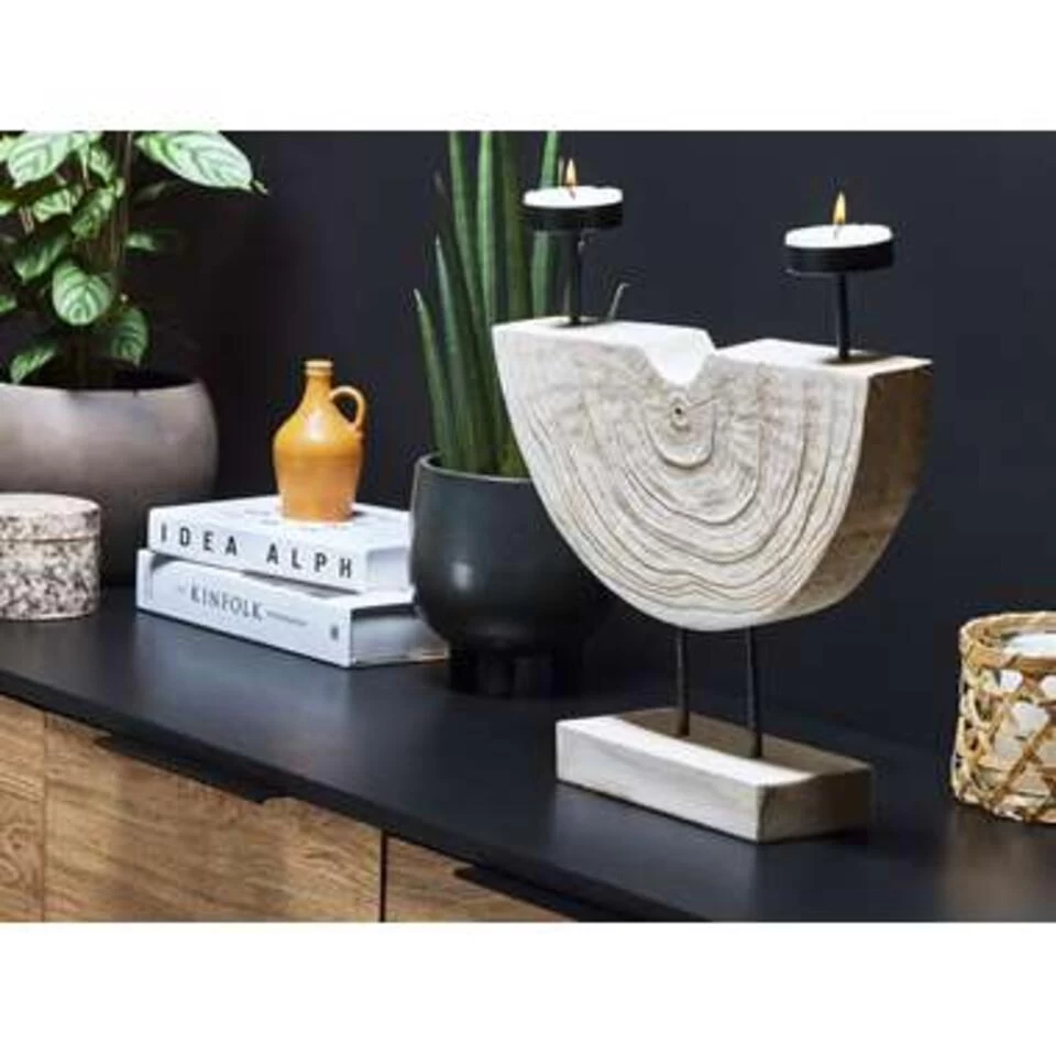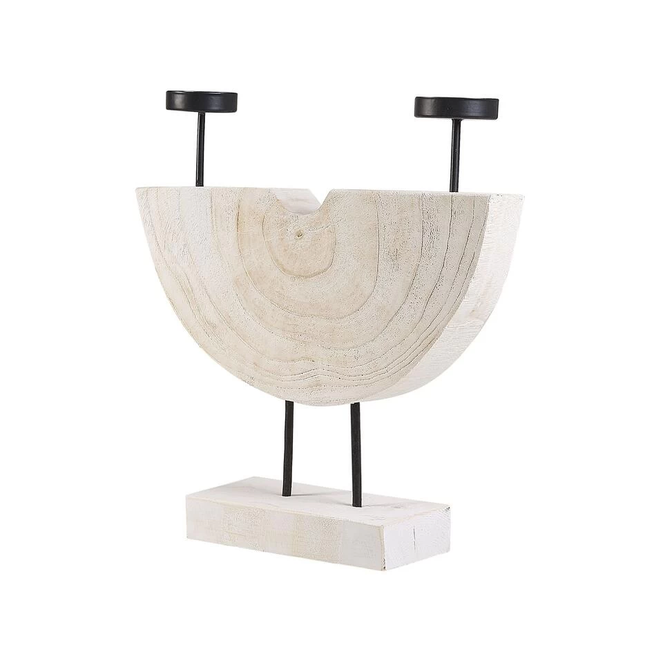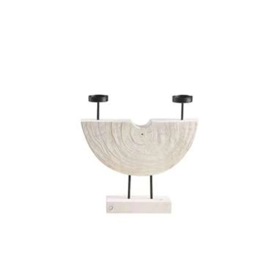 Rustiek ogende witte waxinelicht houder van hout. Als je iemand bent die waarde hecht aan nut, is het waarschijnlijk moeilijk voor je om goede decoratie voor je huis te vinden. Gelukkig zijn er ook decorstukken die functionaliteit bieden, zoals deze dubbele kandelaar. Het is gemaakt van natuurlijk hout, geverfd in wit en heeft een prachtig boho-ontwerp dat er nog mooier uitziet als het wordt verlicht met kaarsen. Kalmerende sfeerverlichting gecombineerd met dit decoratieve stuk zal het uiterlijk van elke kamer verbeteren.