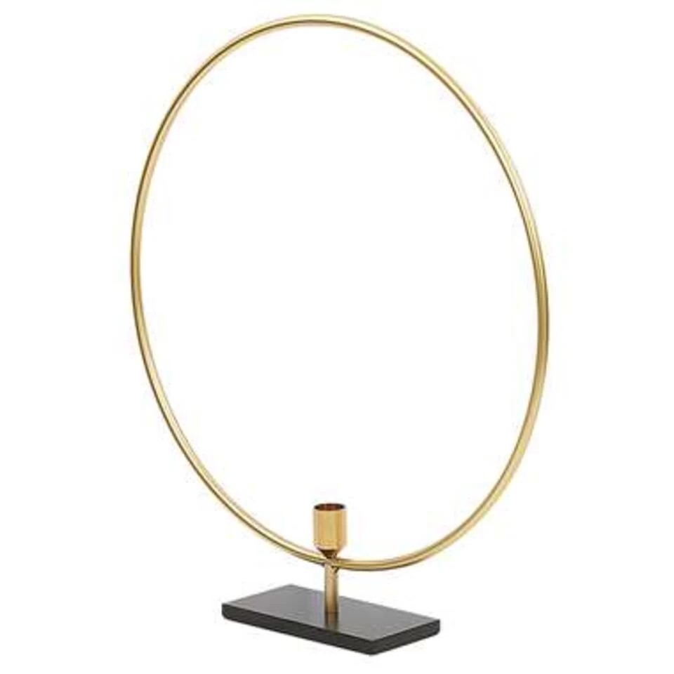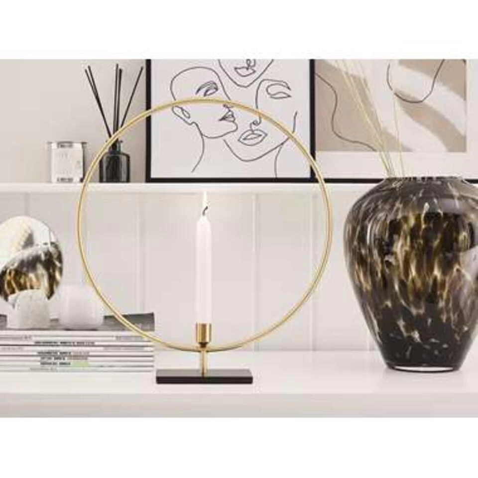 Minimalistische, zwarte kandelaar. Zorg ervoor dat jouw eetkamer goed verlicht en gedecoreerd is. Een goudkleurige kandelaar in een ronde draadvorm dient als delicaat decoratief stuk waarmee je tevens de kamer warm kan verlichten. Steek een kaars aan en geniet van een romantisch verlicht diner met je partner met deze kandelaar.
