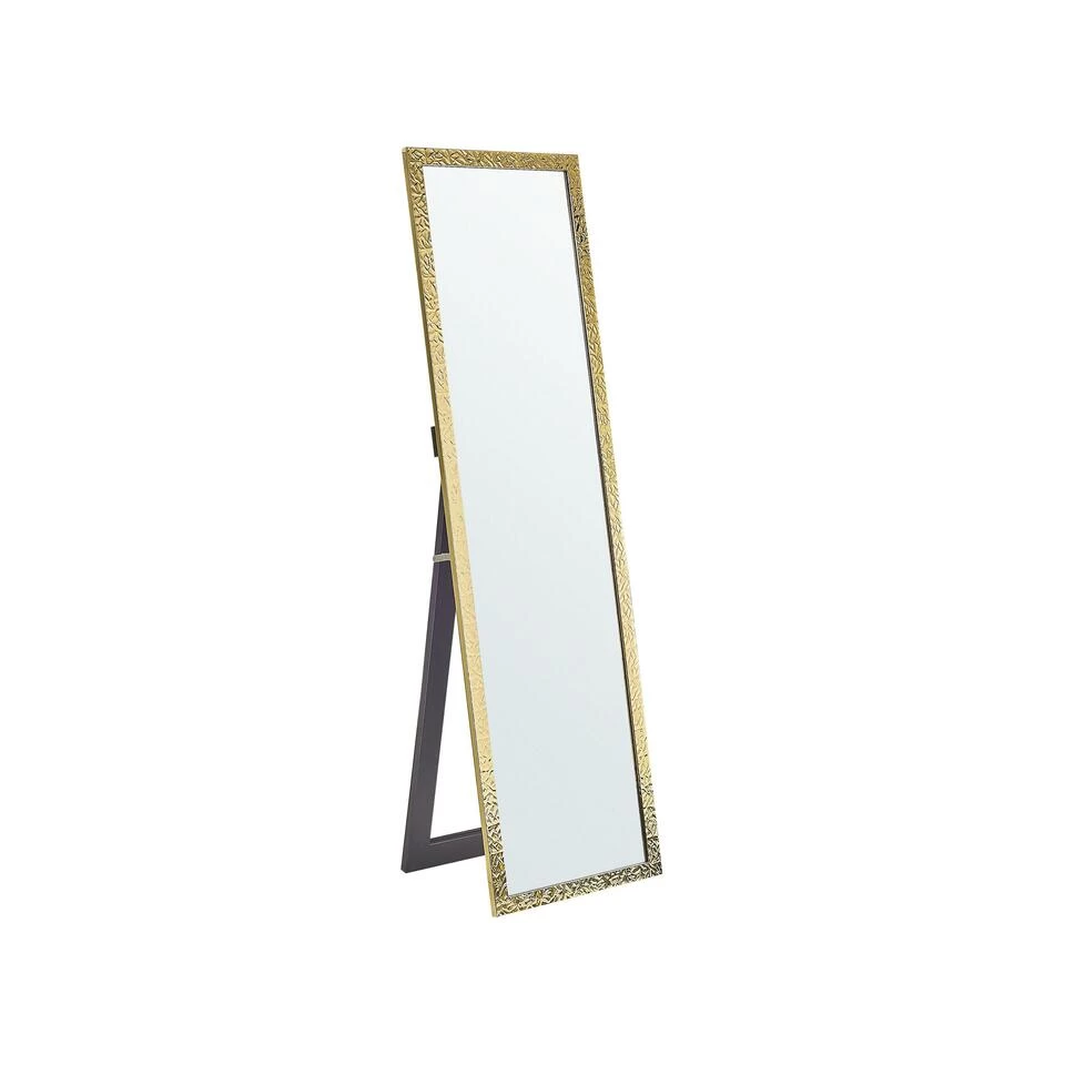 Lange Staande Spiegel met Decoratief Frame. Decoreer je interieur met deze stijlvolle spiegel om niet alleen de aandacht te trekken van je gasten, maar om je kamer ook visueel te vergroten. Het is gemaakt van duurzame materialen. Dit stuk hoeft niet jarenlang dagelijks onderhouden te worden. Dankzij de steun aan de achterkant kan je het overzal zetten zonder dat je bang moet zijn dat het omver valt. De spiegel zal dankzij zijn versierde omlijsting het er het beste uit zien in een modern, glamoureus interieur.