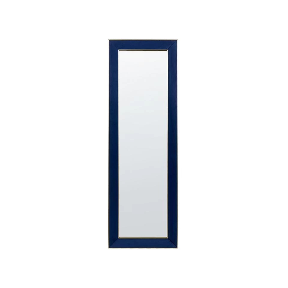 Glamour vloerspiegel met fluwelen frame. Deze elegante handgemaakte spiegel charmeert met zijn stijlvolle en chique design. Het duurzame frame, bekleed met hoogwaardige polyester fluwelen stof, wordt benadrukt door gouden randen. Met praktische haken en een metalen standaard kan de spiegel in elke slaapkamer, woonkamer of gang worden geplaatst en horizontaal of verticaal worden opgehangen.