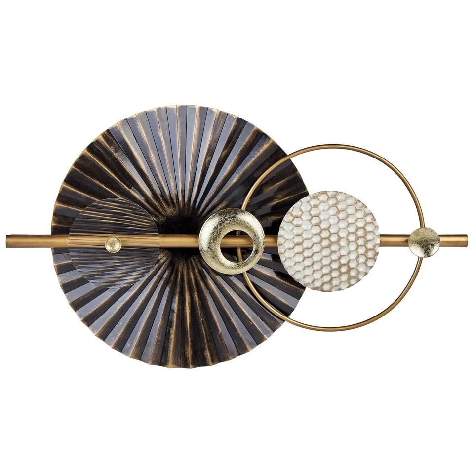Metalen wandkunst. Kleed je muren aan met een hangend stuk dat je het gevoel geeft dat je in een kunstgalerie bent. Hij is handgemaakt van metaal met een metallic afwerking en heeft een abstract, geometrisch ontwerp dat geweldig past bij een eigentijdse interieurstijl. Stijl het in je woonkamer of slaapkamer om stijl en textuur in de kamer te brengen.