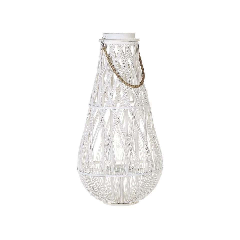 Hoge lantaarn van bamboe hout. Een lantaarn van gevlochten bamboehout zal een geweldige decoratie zijn voor een woonkamer of slaapkamer, hij zal ook op het terras werken. De handige, afneembare handgreep maakt hem gemakkelijk te dragen en de ronde basis zorgt voor stabiliteit. Binnenin de lantaarn zit een praktische glazen kandelaar.