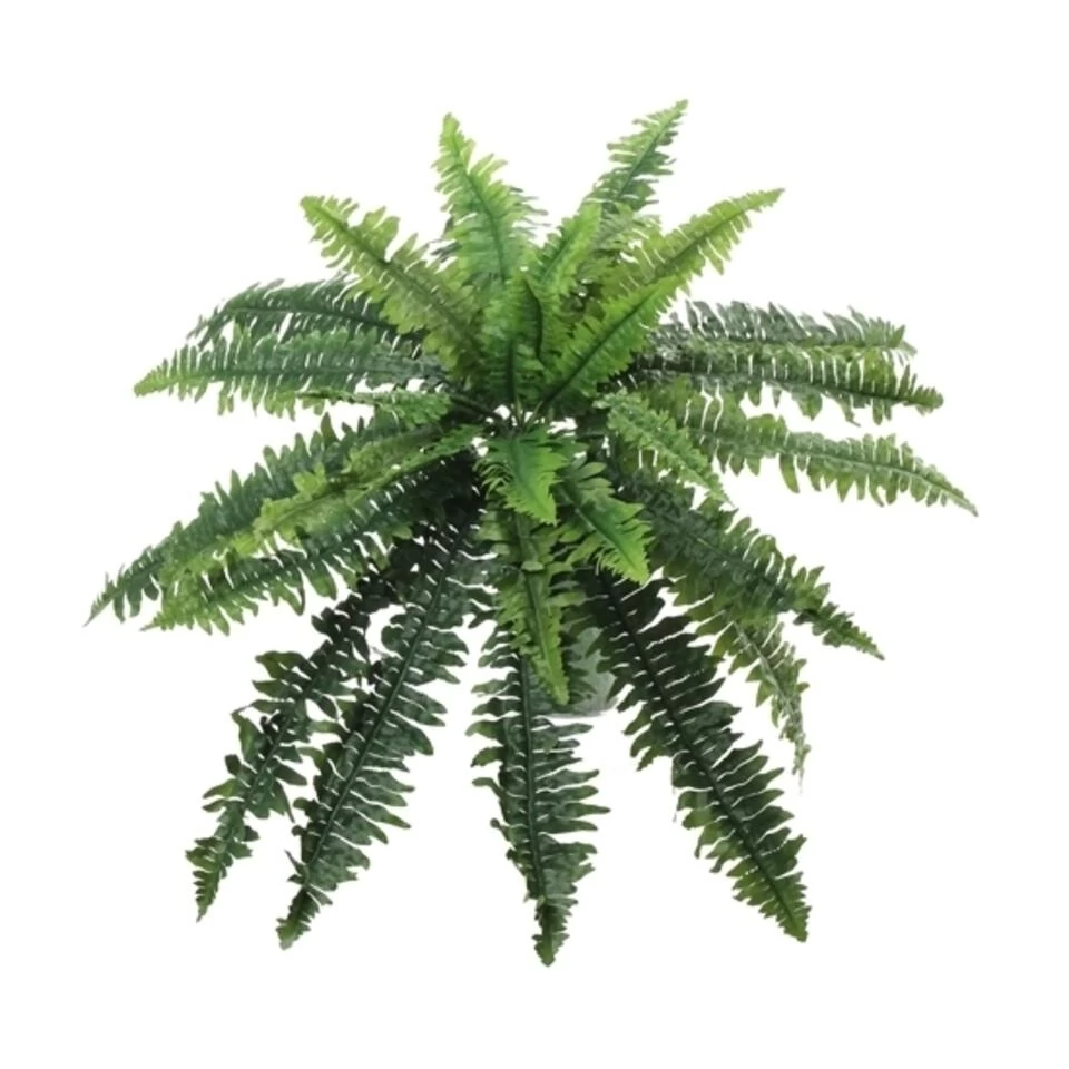 Kunst varen groen. Deze varen kunstplant is voorzien van 26 bladeren en heeft een diameter van ongeveer 28 cm.