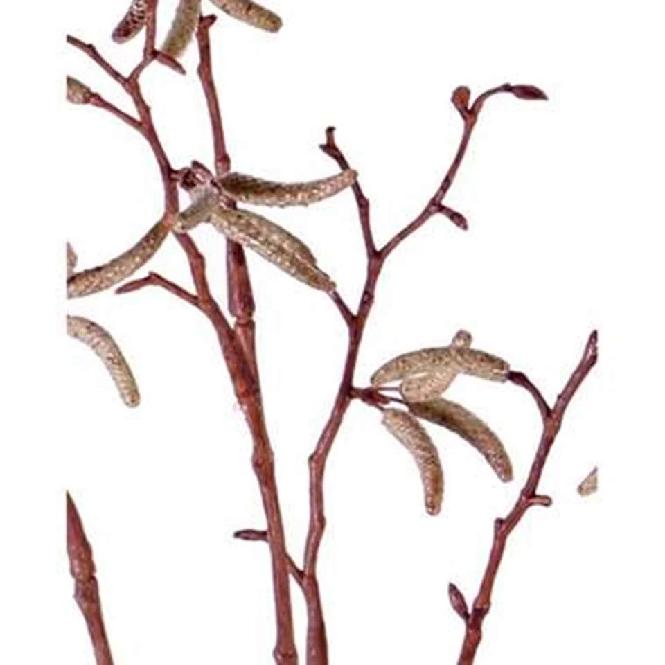 Bruine Betula pendula/berkenkatjes kunsttak 66 cm. Onderhoudsvrije bruine Betula pendula/berkenkatjes kunsttak met 25 witte katjes. De tak is geschikt om los in een vaas te zetten of om in combinatie met andere kunsttakken en kunstbloemen tot een boeket te binden. Ook leuk te combineren met paaseieren als paastakken versieringen tijdens Pasen. Materiaal: kunststof/plastic. Formaat: 66 cm lang. Nepplanten nepbloemen woondecoraties voor in huis.
