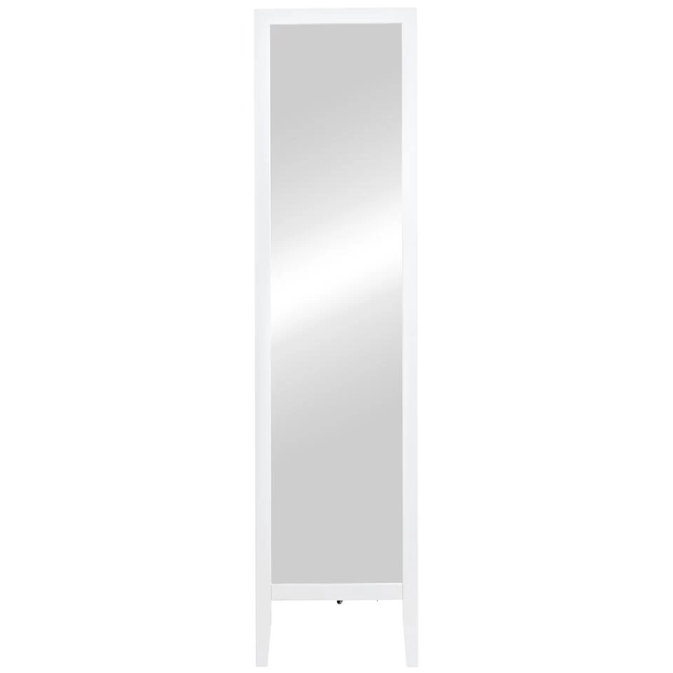 De elegante en verfijnde stijl maakt van deze spiegel een must-have in huis. Het maakt het esthetisch mooi en perfect voor het decoreren van elke kamer, van de woonkamer tot de slaapkamer. Door zijn handige formaat is deze kapspiegel perfect voor kleinere ruimtes. Dankzij de scharnierende standaard kan de spiegel gemakkelijk worden geplaatst en individueel worden uitgelijnd. Bovendien is de spiegel uitgerust met drie haken om de accessoires snel bij de hand te hebben.