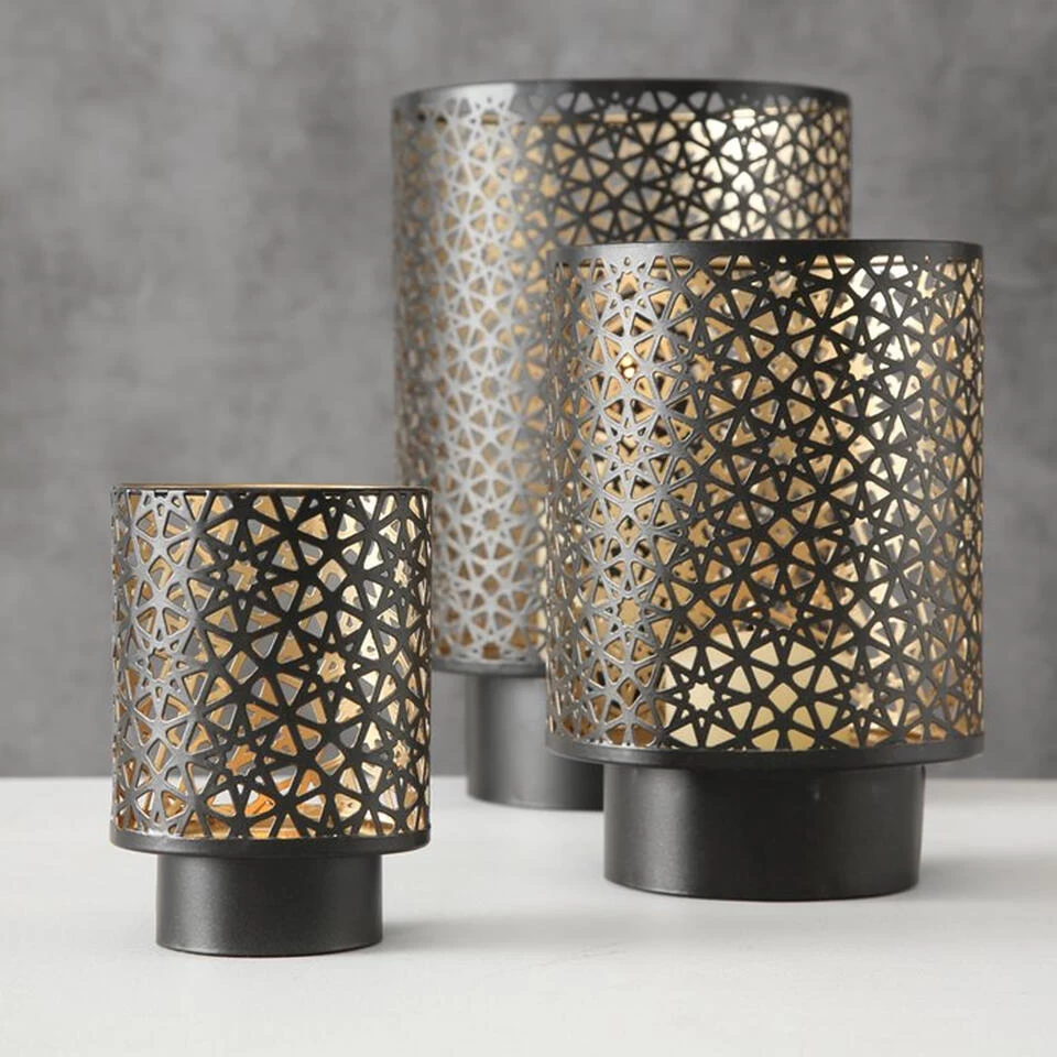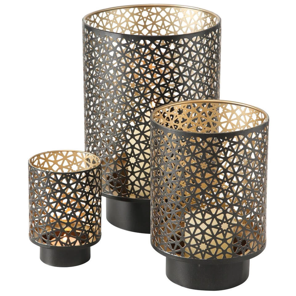 Deco By Boltze Windlichten – 3 Stuks – Goud En Zwart – Metaal