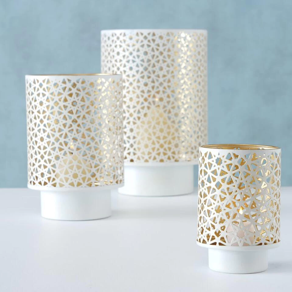 Deco By Boltze Windlichten – 3 Stuks – Metaal – Wit Met Goudkleurig