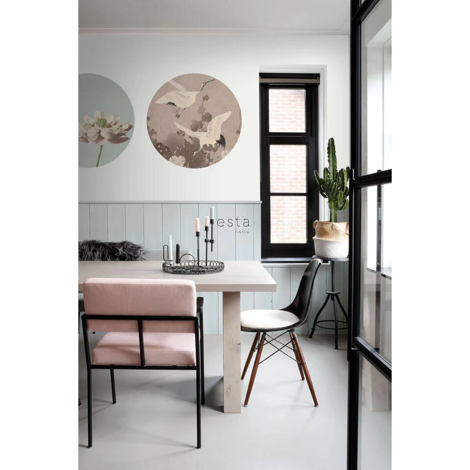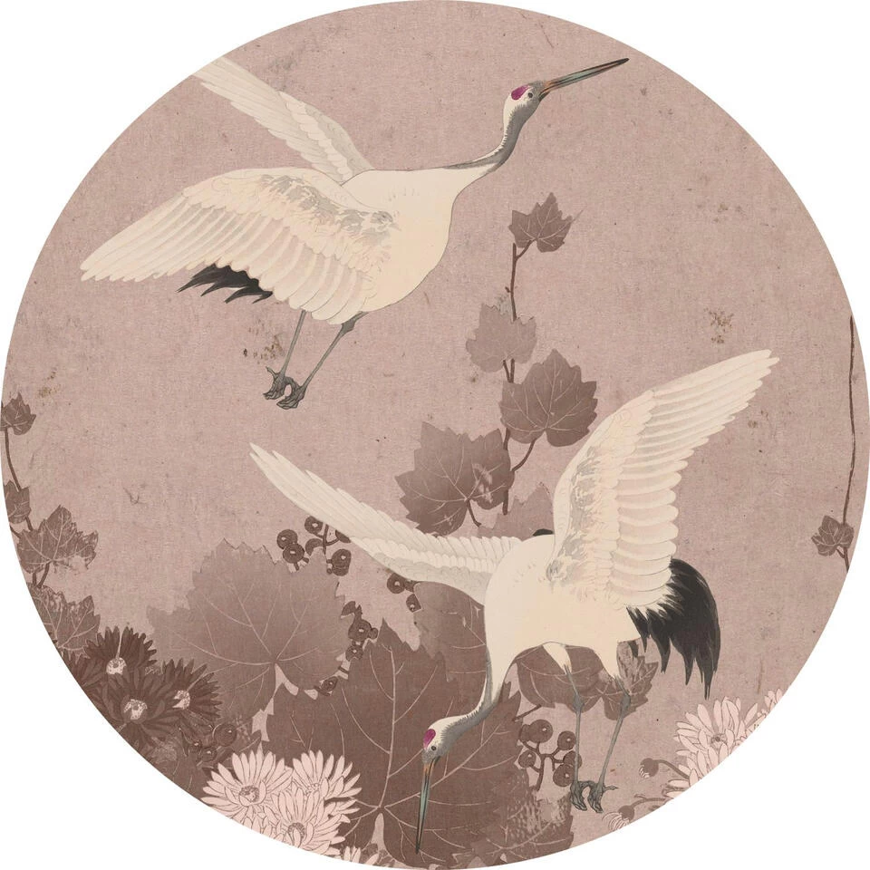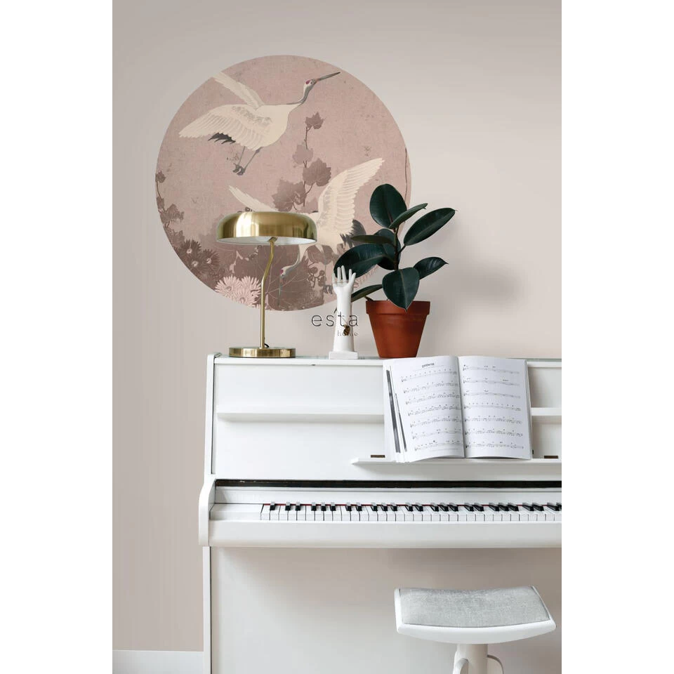 ESTAhome Zelfklevende Behangcirkel – Kraanvogels – Grijs Roze – Ø 70 Cm – 158995