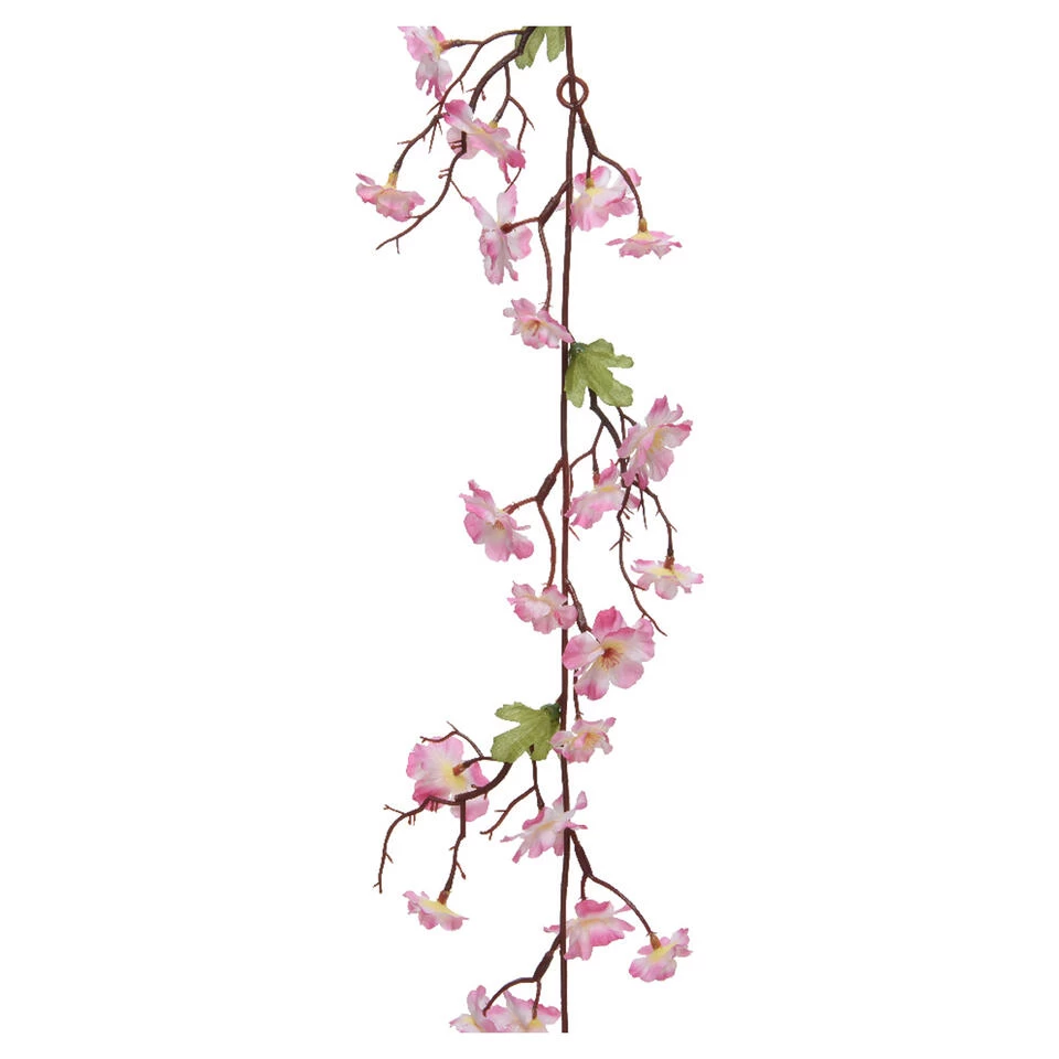 Everlands kunstbloem/bloesem decoratie takken. Zeer realistisch uitziende kunstplanten slinger met takken en roze bloemen. Creeer een groene ruimte zonder onderhoud. Materiaal: kunststof. Lengte: ca. 187 cm. Breedte: ca. 15 cm. Hoogte: ca. 8 cm.