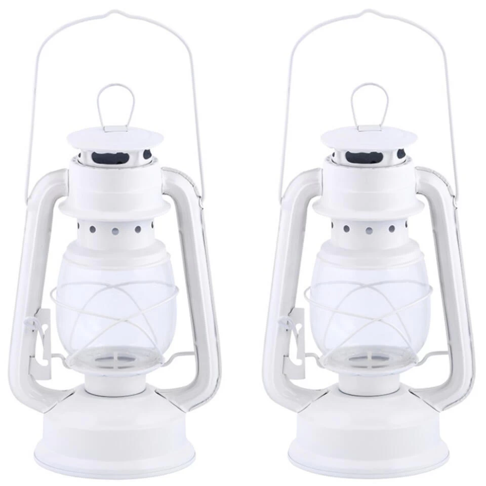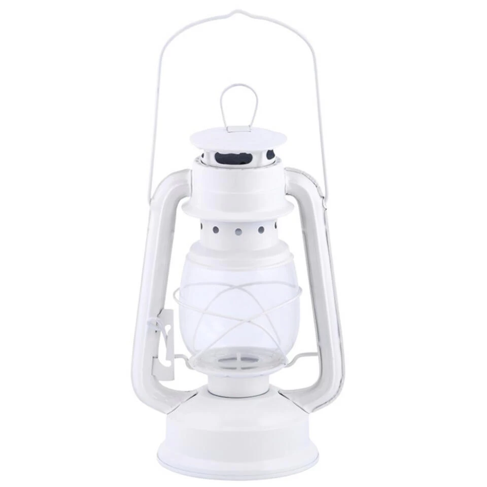 Stormlantaarn/windlicht wit voor waxinelichtjes. Sfeervolle lantaarn met ouderwetse olielamp uitstraling welke te vullen is met een theelichtje. Aan de bovenzijde zit een hang oog van circa 3 cm om de lantaarn makkelijk op te hangen. Formaat: 11,5 x 15 x 24,1 cm. Totale hoogte met hengsel is 39 cm. Materiaal: ijzer, glas.