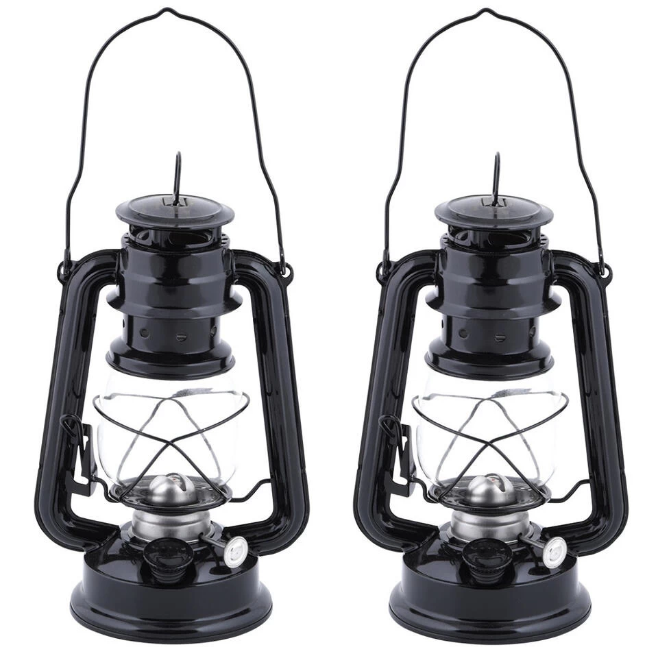 Olielamp lantaarn zwart geschikt voor lampenolie. Sfeervolle lantaarn met ouderwetse olielamp uitstraling welke te vullen is met lampen olie. Aan de bovenzijde zit een hang oog van circa 3 cm om de lantaarn makkelijk op te hangen. Formaat: 11,7 x 15,7 x 24,1 cm. Materiaal: metaal, glas.