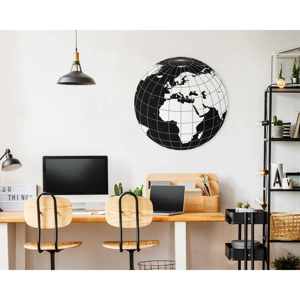 Glasschilderij Geometrische Wereldbol Ø 70 Cm Wit