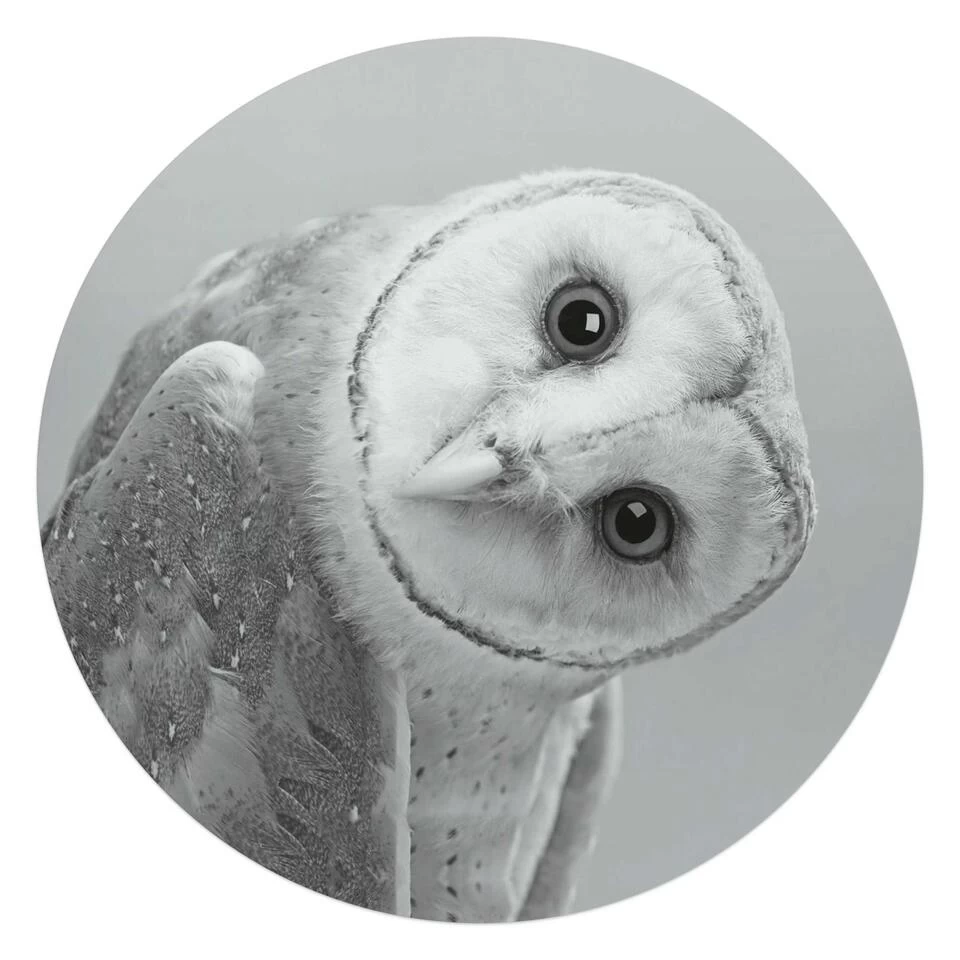 Glasschilderij Kerkuil Ø 70 Cm Zwart-Wit
