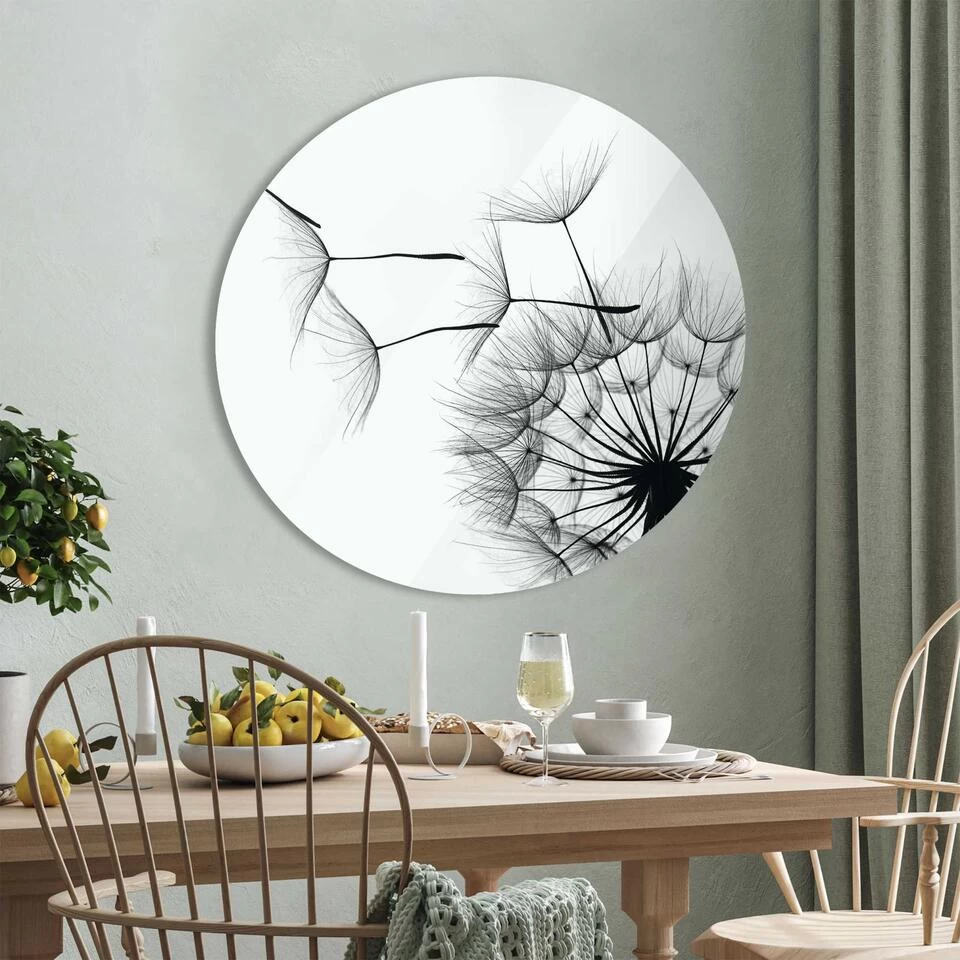 Print op 4mm dik ESG-veiligheidsglas, compleet met voorgemonteerde wandmontage en afstandhouders. De ronde vorm van de glasprint onderstreept op subtiele wijze het kenmerkende karakter van de afbeelding.Kenmerken