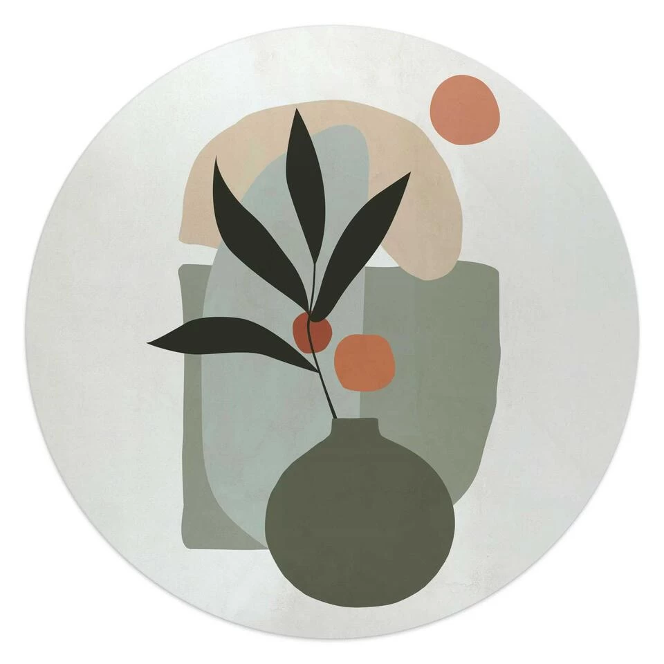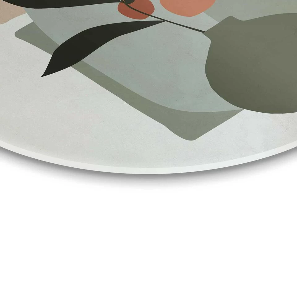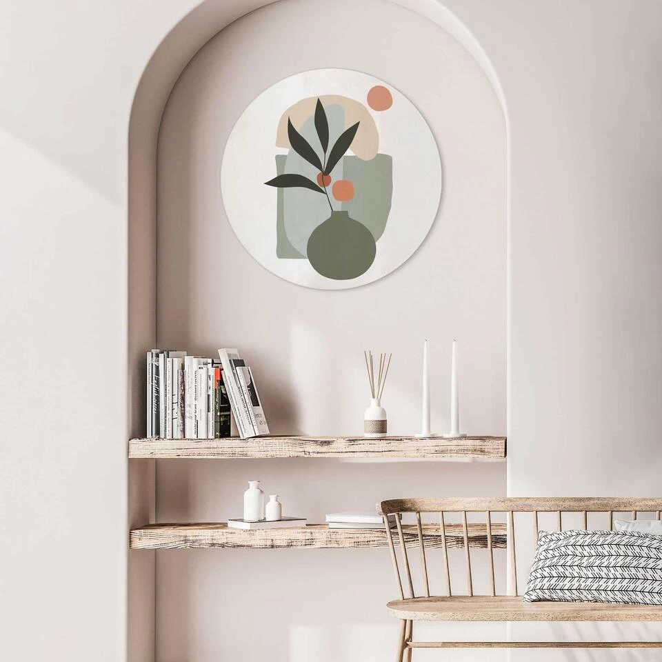 Glasschilderij Vaas Met Bloemen Ø 50 Cm Groen