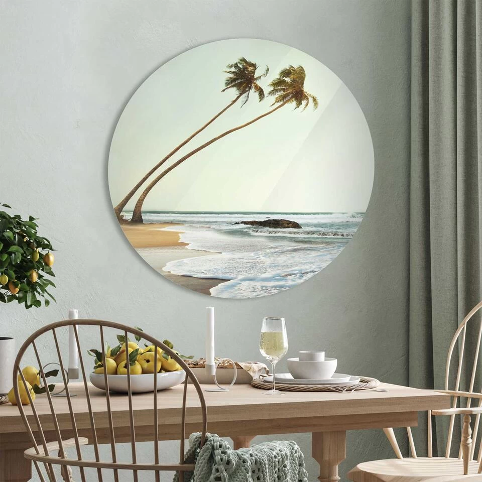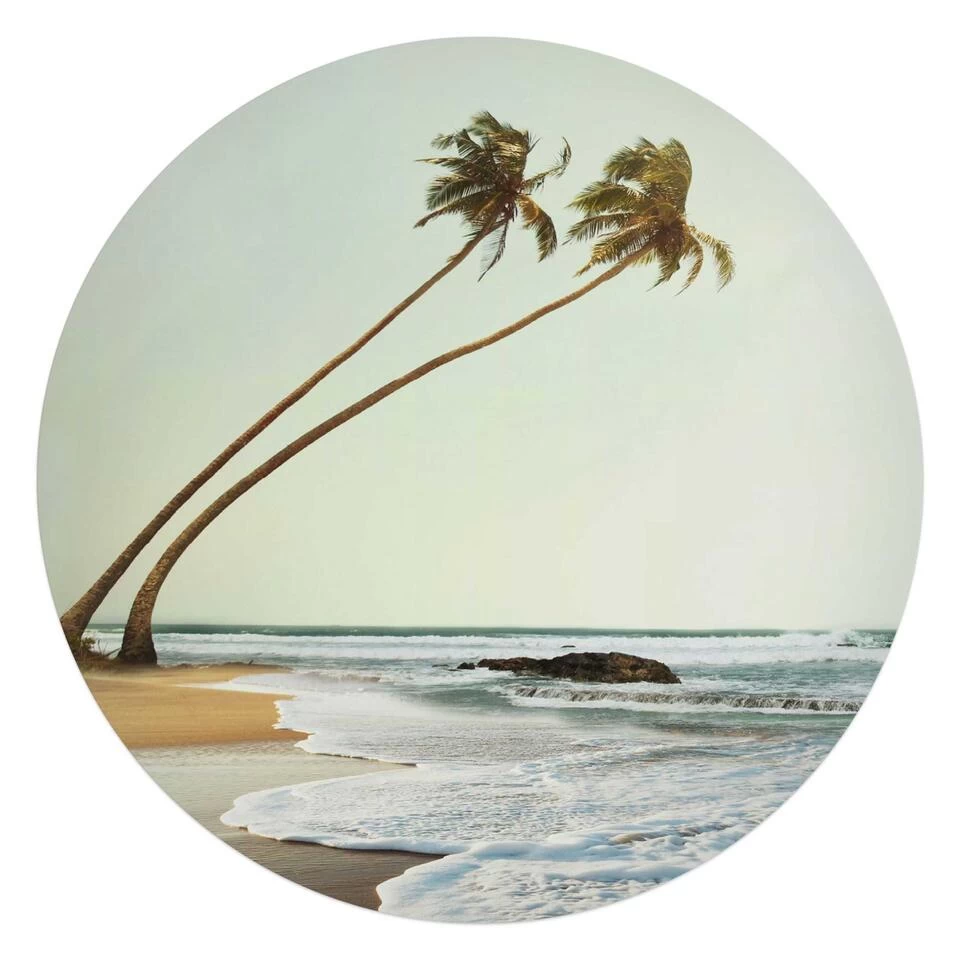 Glasschilderij Wuivende Palmen Ø 70 Cm Groen