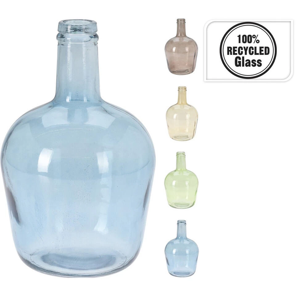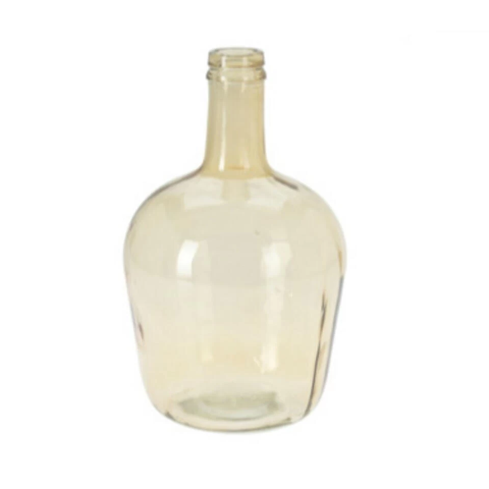 H&S Collection Fles vorm Bloemenvaas San Remo gemaakt van gerecycled geel transparant glas. Afmetingen: D19 x H30 cm. Vazen voor bloemen en deco takken. Krui/fles model vorm. Deze vaas heeft een iets lichte kleur geel. Home decoratie woonaccessoires voor binnen. Plaats 3 of 4 mooie stelen van rond de 60 cm in de flessenhals voor een prachtige compositie.