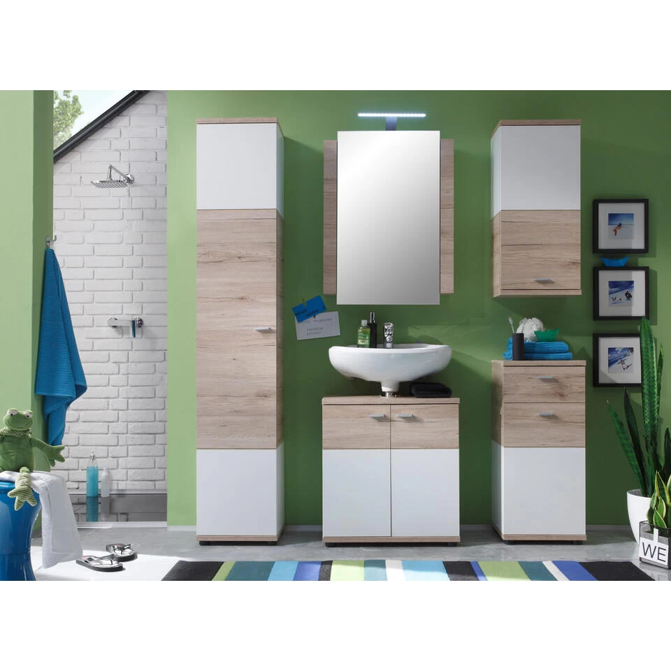 CampusBad spiegel spiegelkast 1 deur, incl. verlichting eiken decor, wit. 2 legplanken. Je ontvangt meubels van een goede kwaliteit met een aangenaam comfort, gemaakt in een stijlvol en mooi design. Onze meubels zijn zeer aantrekkelijk geprijsd. Creëer uw eigen persoonlijke stijl met een nieuw meubel. Combineer met kleinmeubels of een paar mooie woonaccessoires. Hier verkrijg je de nieuwe woningtrends, zoals je ze in tijdschriften en magazines ziet. Bij ons vindt u unieke, praktische en comfortabele meubels met elk zijn eigen, mooi en apart design.