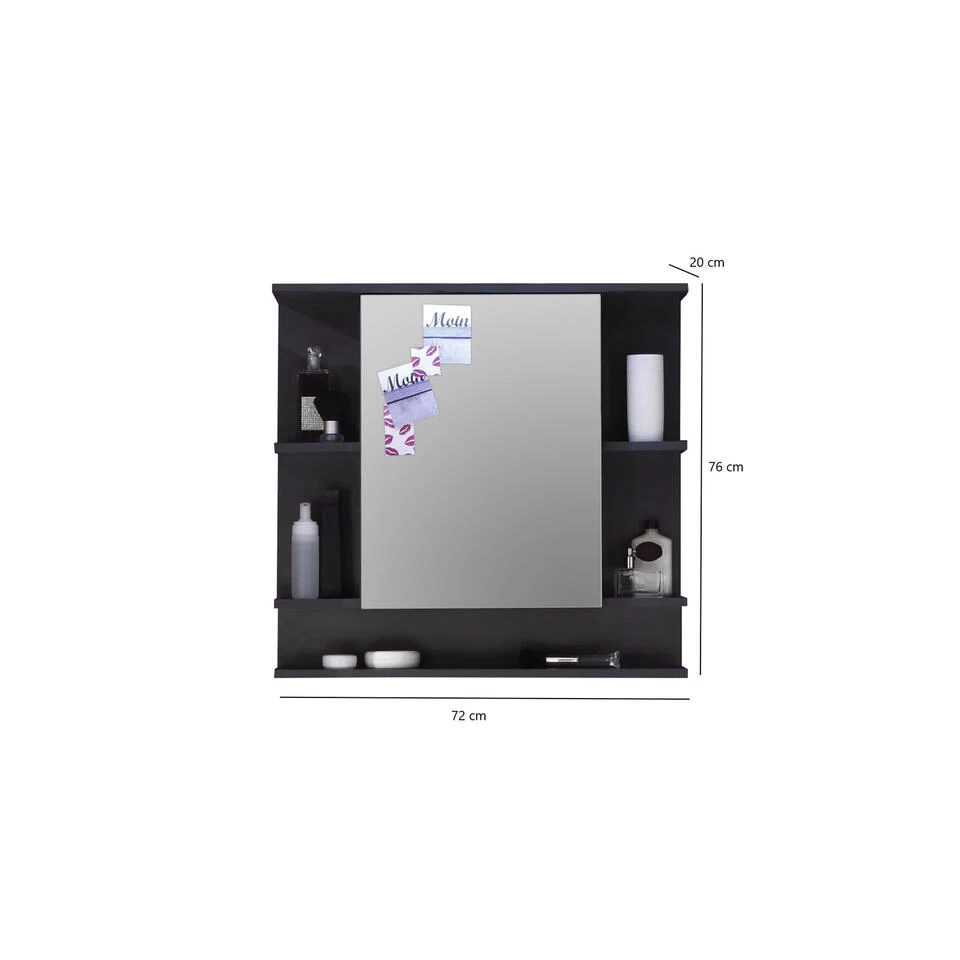 Hioshop Spiegelkast TetisBad Mdf – 1 Deurs – Grafiet