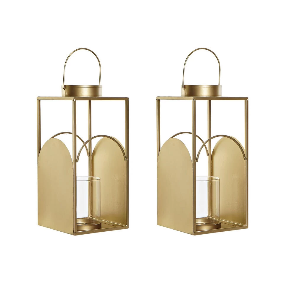 Items Lantaarn – Goudkleurig – Metaal – Glas – 45 Cm