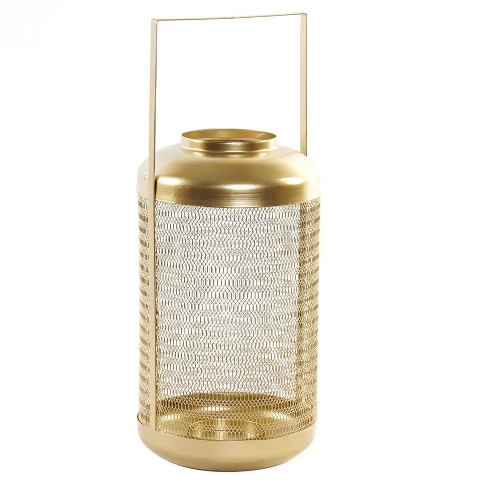 Kaarshouder/windlicht goud metaal. Decoratieve, goudkleurige kaarsenhouder. Materiaal: metaal. Formaat: ca. 18,5 cm in diameter en 34 cm in hoogte.
