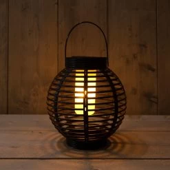 Anna’s Collection Lantaarn – Solar – Zwart – Rond – Vlameffect – 23cm