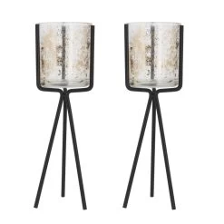 Cosy @ Home Waxinelichthouder – Op Metalen Voet – Zwart – 23 Cm