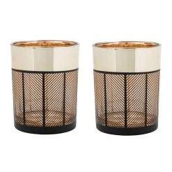 Cosy @ Home Theelichthouder – Glas – Zwart Met Goud – Rond – 13 Cm