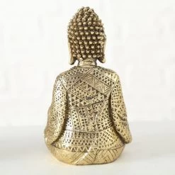Merkloos Waxinelichthouder Boeddha – Goudkleurig – Polyresin – 14 Cm