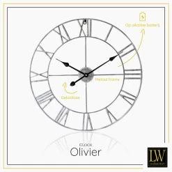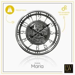 LW Collection Wandklok Radar Maria Zilver 54cm Bewegende Tandwielen