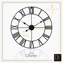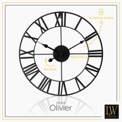 LW Collection Wandklok Radar Adela Zwart 80cm Bewegende Tandwielen