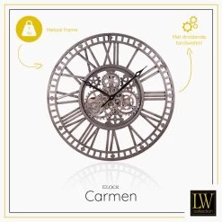 LW Collection Wandklok Radar Carmen Zilver 60cm Bewegende Tandwielen