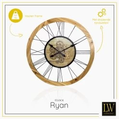 LW Collection Wandklok Radar Ryan Bruin 65cm Bewegende Tandwielen