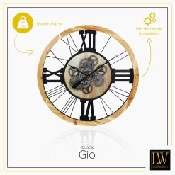 LW Collection Wandklok Radar Gio Bruin Zwart 80cm Bewegende Tandwielen