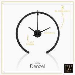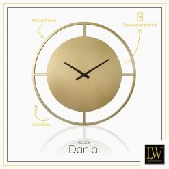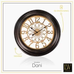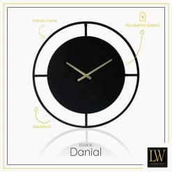 LW Collection Wandklok Danial Zwart Goud 60cm