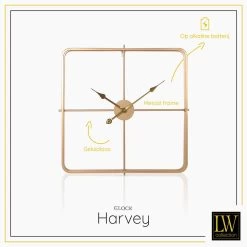 LW Collection Wandklok Jannah Zwart Met Gouden Wijzers 60cm