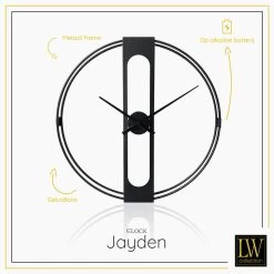 LW Collection Wandklok Jayden Zwart 80cm