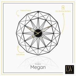 LW Collection Wandklok Megan Zwart 60cm