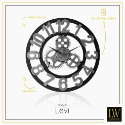 LW Collection Wandklok Levi Grijs Cijfers 40cm