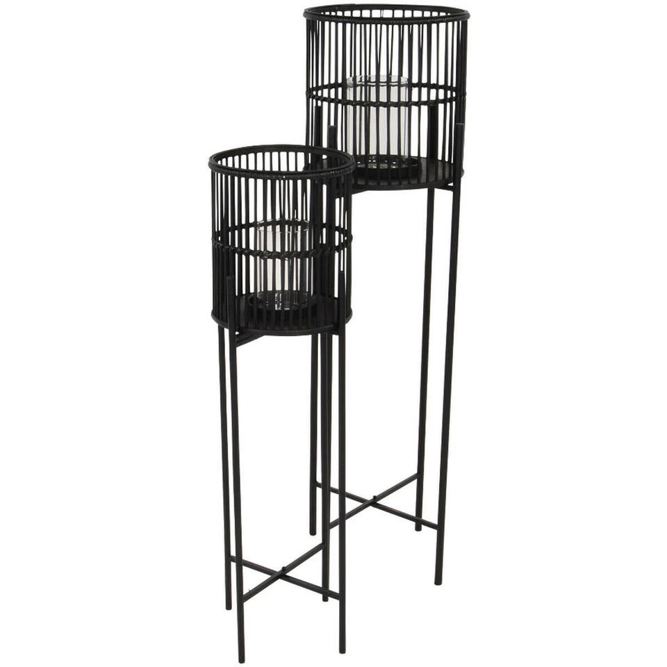 Geef uw interieur een bohemian en natuurlijke sfeer met lantaarnset Annchi! Deze hippe set komt uit de collectie van het merk Les en bestaat uit twee lantaarns met verschillende afmetingen. Beide exemplaren zijn voorzien van een slank metalen onderstel met een zwarte kleur als afwerking. Op elk onderstel rust een bamboe lantaarn in een prachtige zwarte tint. Decoreer deze lantaarns met een leuke plant of een kaars en geniet van zijn prachtige design. Plaats lantaarnset Annchi in de woonkamer, slaapkamer of hal, maar gebruik hem ook om de tuinkamer of ruimte onder de veranda een nieuwe look te geven. Tevens verkrijgbaar in het naturel. Afmetingen: Kleine lantaarn op poot: B26xD26xH88 cm Grote lantaarn op poot: B32xD32xH109 cm