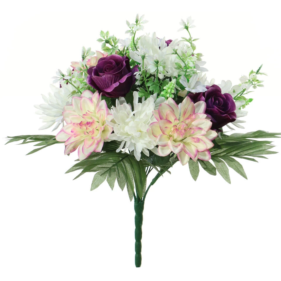 Louis Maes Kunstbloemen Boeket Roos/dahlia – Paars/creme – H36 Cm