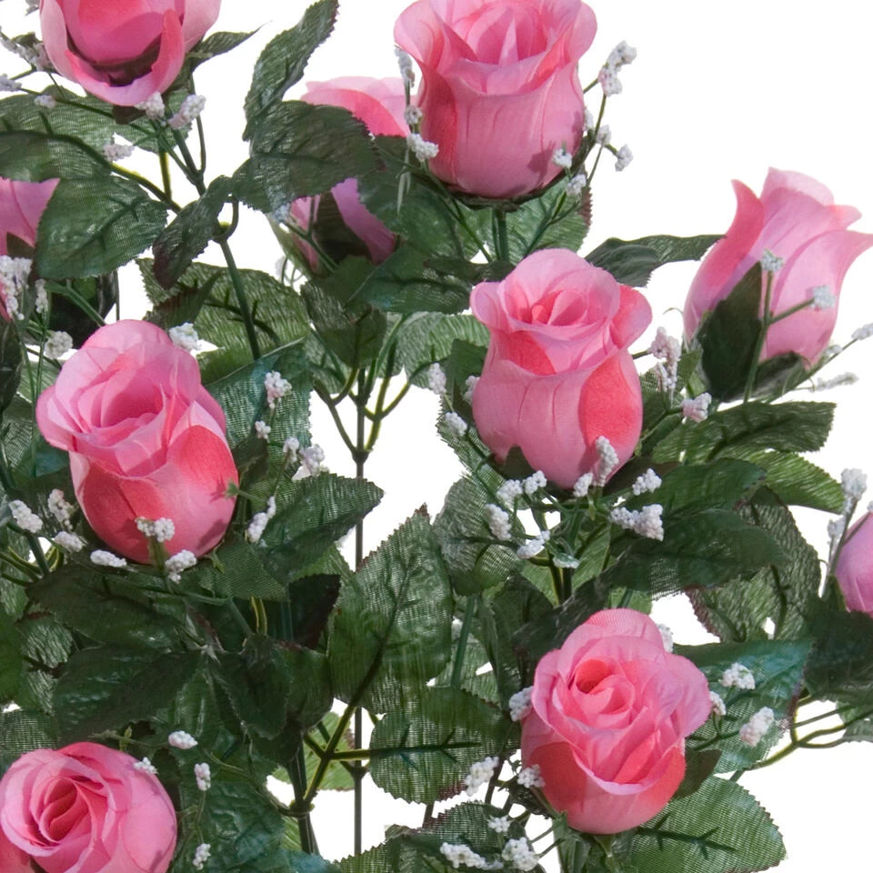 Kunstbloemen boeket met rozen en gipskruid in kleur lichtroze met afmeting van ongeveer H56 cm. Combinatie van kleur lichtroze met bladgroen. Bloemenstuk tafel ornament. Zeer realistisch uitziende, onderhoudsvrije bloemen. Materiaal: pvc/polyester. Woondecoraties voor in huis. Enkel nog even in een mooie vaas plaatsen en genieten. Ook perfect te gebruiken als grafstuk/grafornament in een grafvaasje.