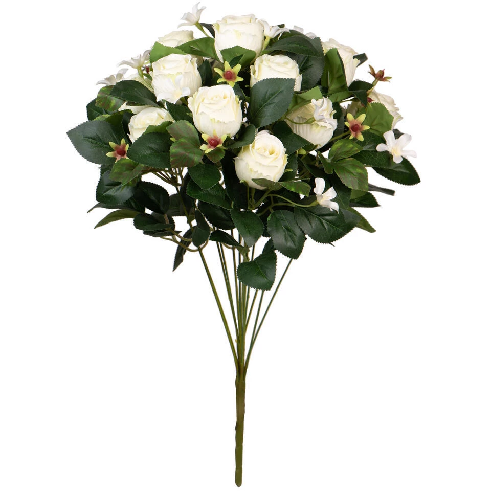 Louis Maes Kunstbloemen Boeket Rozen – Wit – H49 Cm